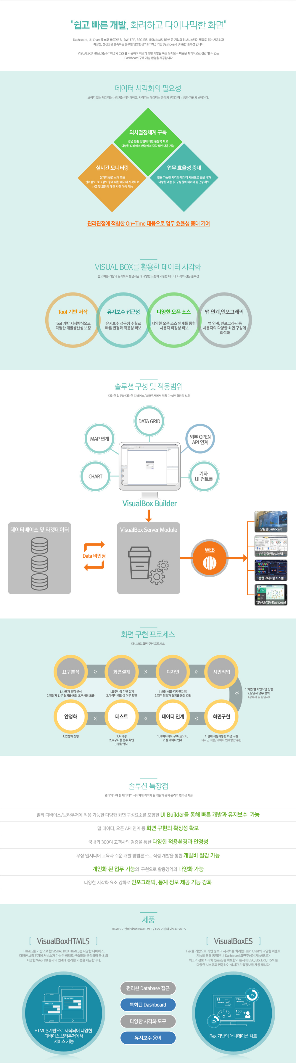 쉽고 빠른 개발과 유지보수 환경 제공, 다양한 표현이 가능한 데이터 시각화 전문 솔루션