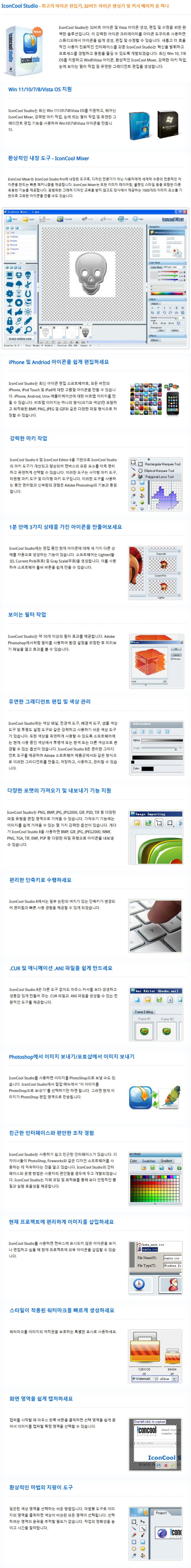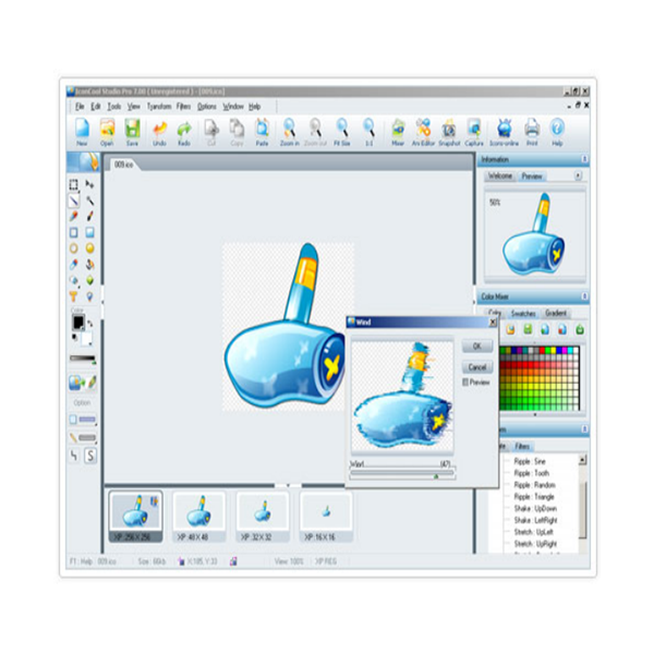 IconCool Studio is a complete solution for 32 bit icon and Vista icon editing, modifying and creation. In addition to icon and cursor formats, it also supports editing of GIF, JPG and PNG image files.