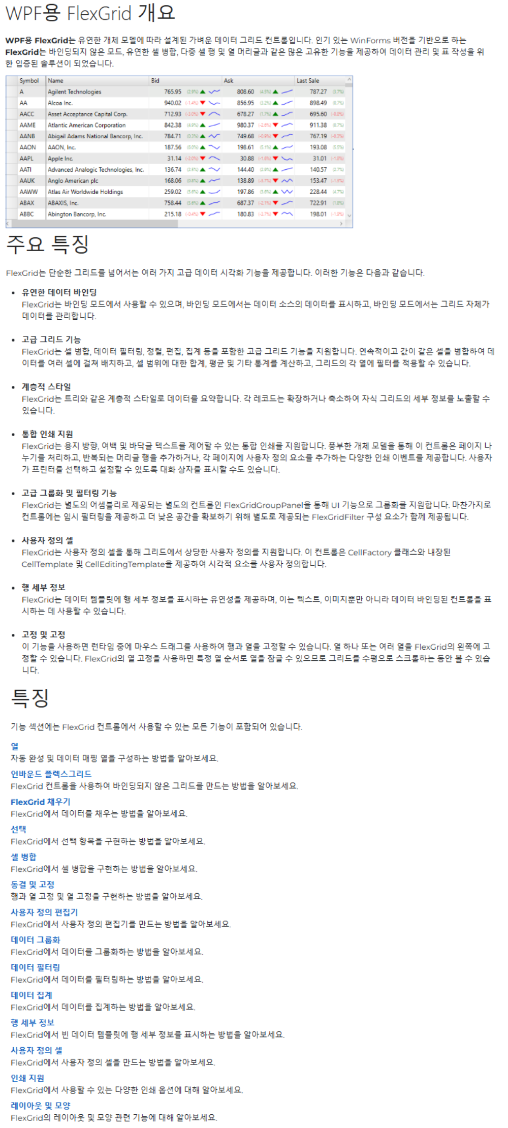 FlexGrid는 단순한 그리드를 넘어서는 여러 가지 고급 데이터